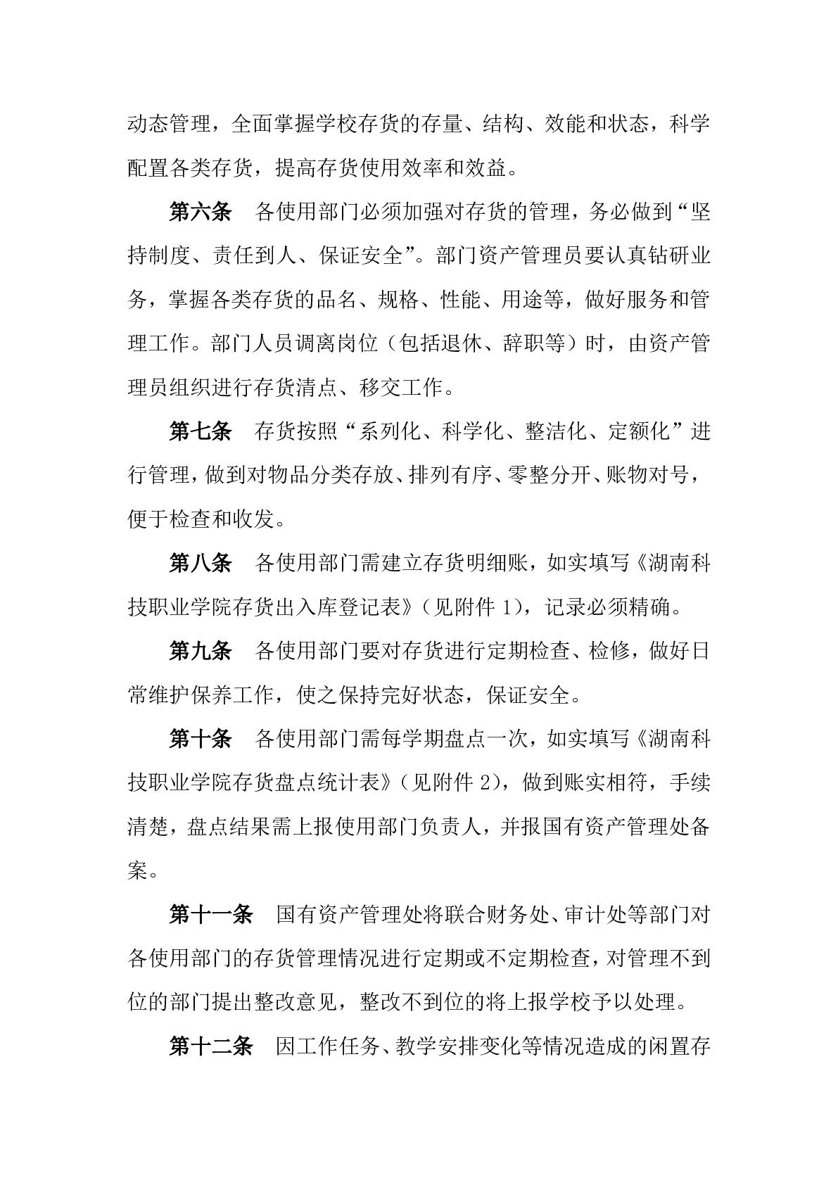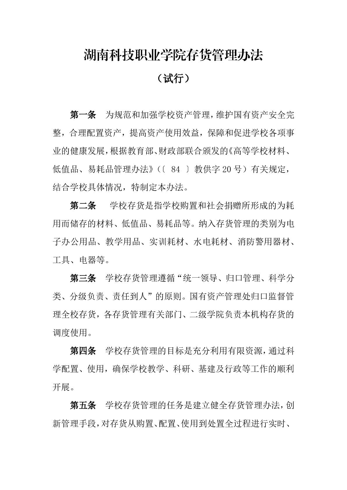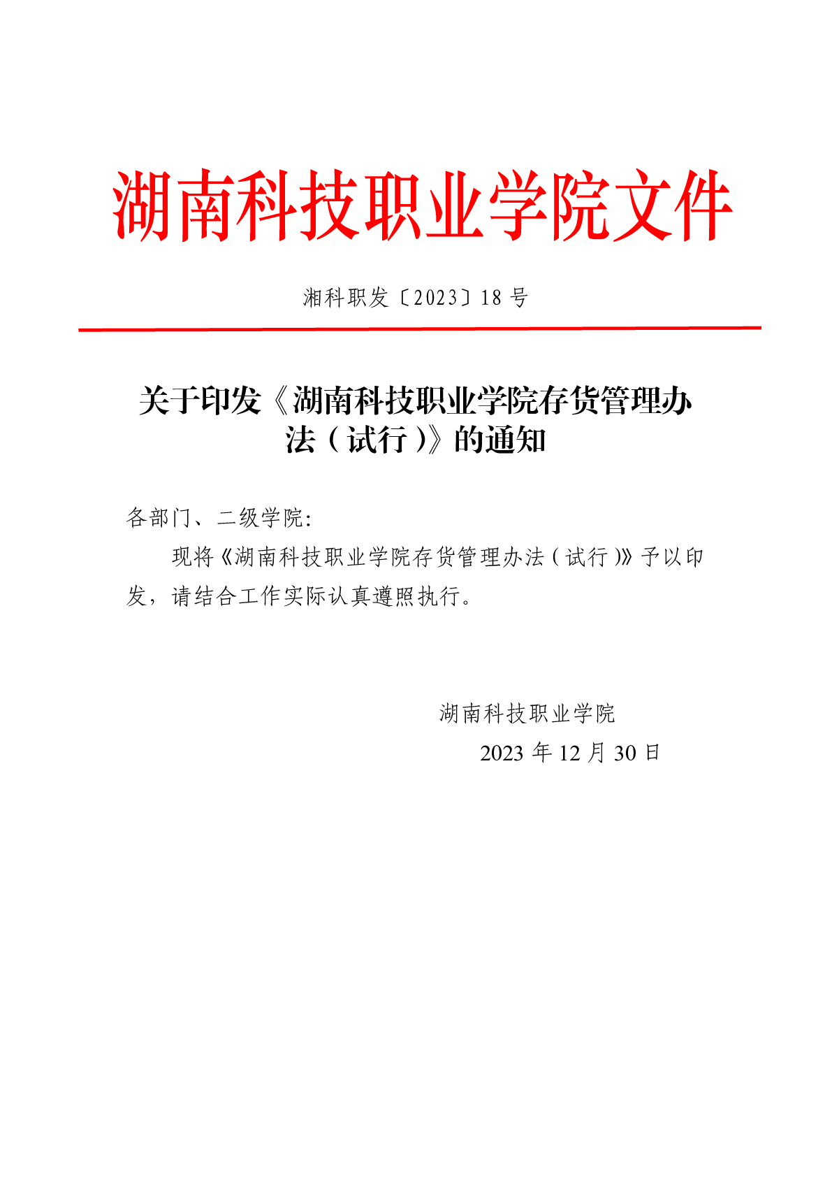 湘科职发〔2023〕18号 关于印发《湖南科技职业学院存货管理办法(试行)》的通知